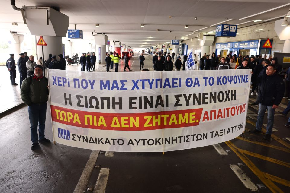 Από την διαμαρτυρία των ταξί στο αεροδρόμιο Ελευθέριος Βενιζέλος
