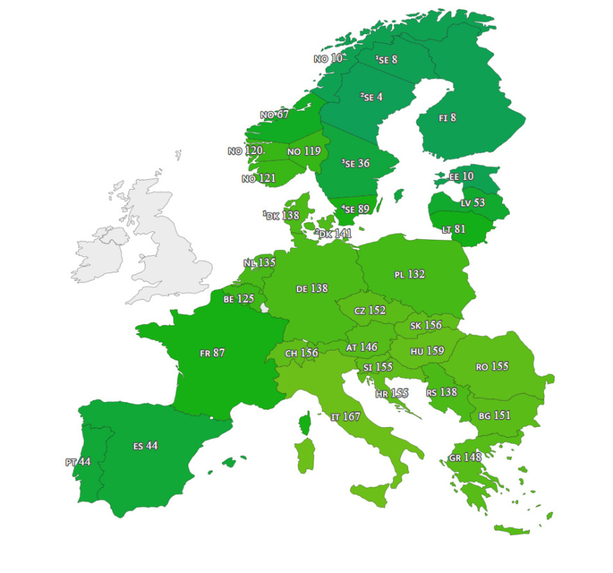 Σε ευρωπαϊκό επίπεδο, οι αυξήσεις καταγράφονται σχεδόν σε όλες τις αγορές, επιβεβαιώνοντας τον γενικευμένο χαρακτήρα της κρίσης. Την υψηλότερη τιμή εμφανίζει η Ιταλία με 164,33 ευρώ/MWh, ακολουθεί η Ουγγαρία με 159,38 ευρώ/MWh, η Αυστρία με 156 ευρώ/MWh και η Ρουμανία με 155,42 ευρώ/MWh. Στη συνέχεια καταγράφονται η Βουλγαρία με 151 ευρώ/MWh, η Ελλάδα με 147,74 ευρώ/MWh και η Γερμανία με 141,91 ευρώ/MWh. Σημαντικά χαμηλότερα κινούνται η Γαλλία με 86,31 ευρώ/MWh, ενώ οι χαμηλότερες τιμές στην Ευρώπη εντοπίζονται στην Ισπανία και την Πορτογαλία, όπου η χονδρική διαμορφώνεται μόλις στα 33,81 ευρώ/MWh.