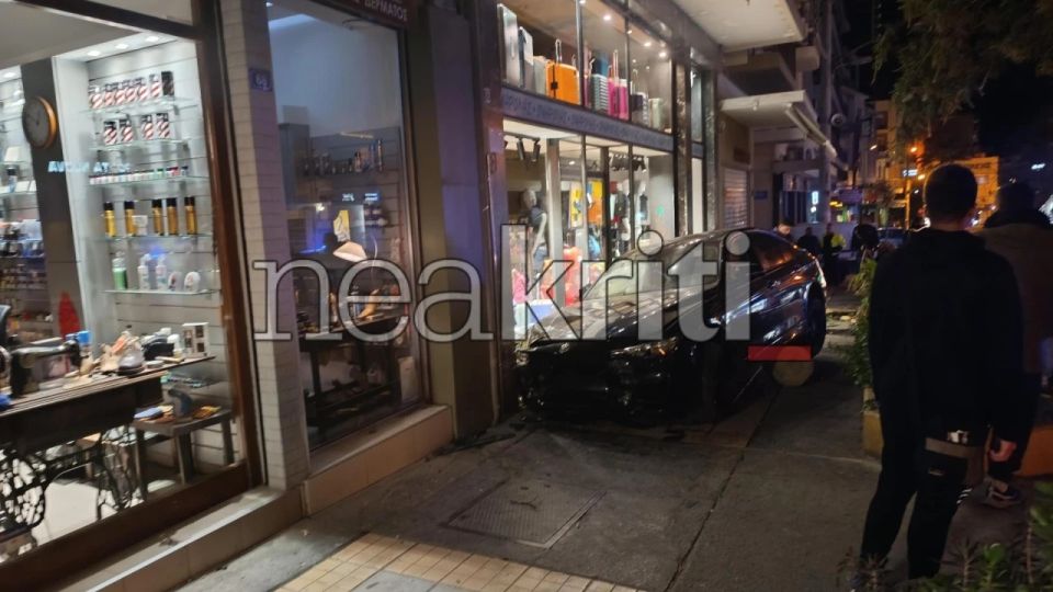Στη βιτρίνα καταστήματος κατέληξε μετά τα μεσάνυχτα, όχημα το οποίο κινούνταν επί της οδού Έβανς, στο κέντρο του Ηρακλείου.