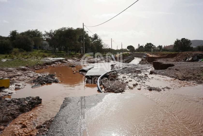 Σε πολλά σημεία μάλιστα το οδόστρωμα κόπηκε με αποτέλεσμα να μην είναι δυνατή η διεύλευση για τα αυτοκίνητα και τους πεζούς.