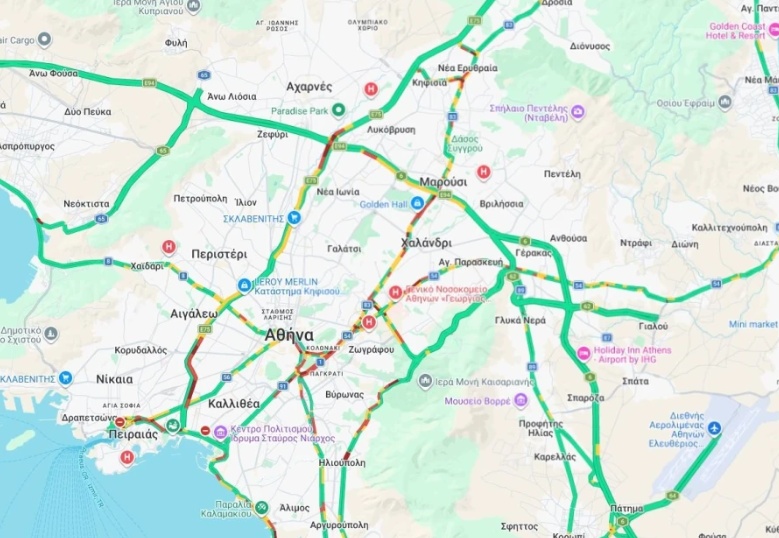 Ειδικότερα, με χαμηλές ταχύτητες κινούνται οι οδηγοί λίγο πριν την Ιερά Οδό στο ρεύμα προς Λαμία.