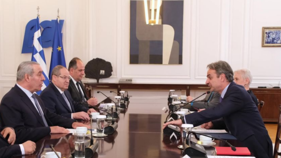 Ο πρωθυπουργός, Κυριάκος Μητσοτάκης, συναντήθηκε σήμερα στο Μέγαρο Μαξίμου με τον αντιπρόεδρο της Παλαιστινιακής Αρχής, Χουσεΐν Αλ-Σέιχ (Hussein al-Sheikh).