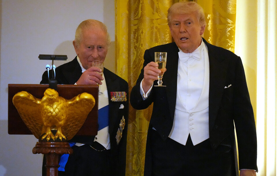 Ο Ντόναλντ Τραμπ δήλωσε σήμερα ότι ο βασιλιάς της Βρετανίας Κάρολος δεν θέλει να αποκτήσει το Ιράν πυρηνικά όπλα, αναφερόμενος στο επίμαχο ζήτημα της σύγκρουσης στη Μέση Ανατολή στα σχόλια που έκανε κατά το επίσημο δείπνο που παρέθεσε στον Λευκό Οίκο για τον βασιλικό επισκέπτη.