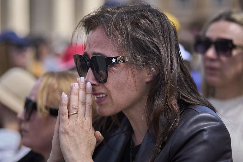 Η Λάουρα Τονέλι, μια 69χρονη Ιταλίδα, σκούπισε τα μάτια της με ένα μαντίλι αφού προσευχήθηκε στον ταπεινό τάφο, από μάρμαρο, στη Βασιλική της Σάντα Μαρία Ματζόρε, που φέρει μονάχα την επιγραφή «Franciscus», το όνομά του Αργεντίνου πάπα στα λατινικά.