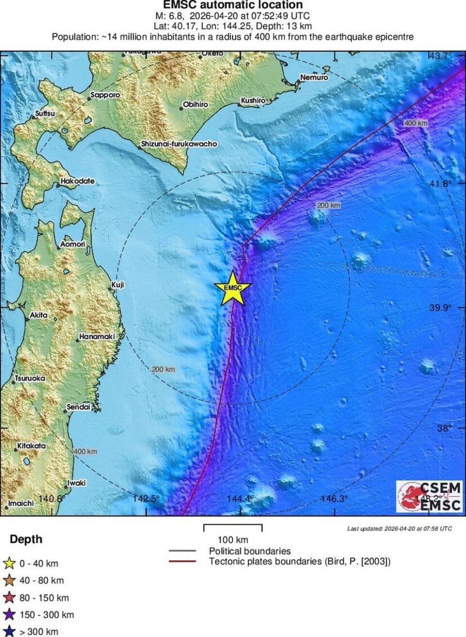 JAPAN (NWPTAC): https://t.co/LRAXIz13Nv pic.twitter.com/LjVgvh4SBJ— EMSC (@LastQuake) April 20, 2026