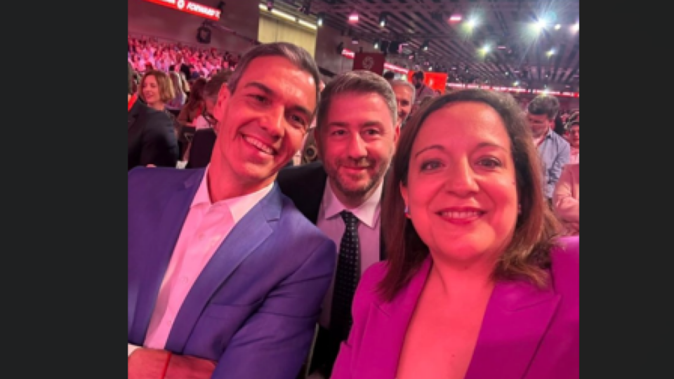 Μοιράστηκε μάλιστα μια selfie με τον Ισπανό Πρωθυπουργό και την Ιράτσε Γκαρσία, επικεφαλής της ευρωομάδας των Σοσιαλιστών.