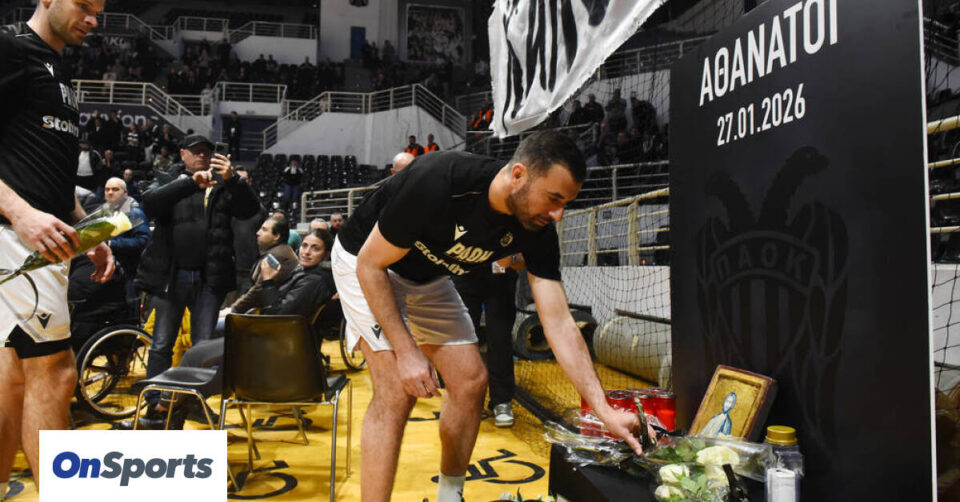 Εκείνη τη στιγμή ο κόσμος φώναζε «αδέρφια ζείτε, εσείς μας οδηγείτε». Στους ηλεκτρονικούς πίνακες του κλειστού έγραφε «Αθάνατοι 27/01/2026». Εν συνεχεία τηρήθηκε ενός λεπτού σιγή.
