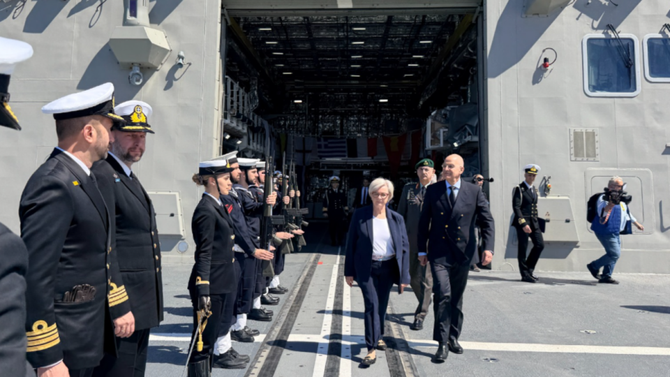«Πραγματοποίησα διμερή συνάντηση με τη Γαλλίδα ομόλογό μου Catherine Vautrin επί της Φρεγάτας ΚΙΜΩΝ. Συζητήσαμε τρόπους περαιτέρω σύσφιγξης των άριστων αμυντικών μας διμερών σχέσεων σε ένα περιβάλλον καθημερινών προκλήσεων ασφάλειας».
